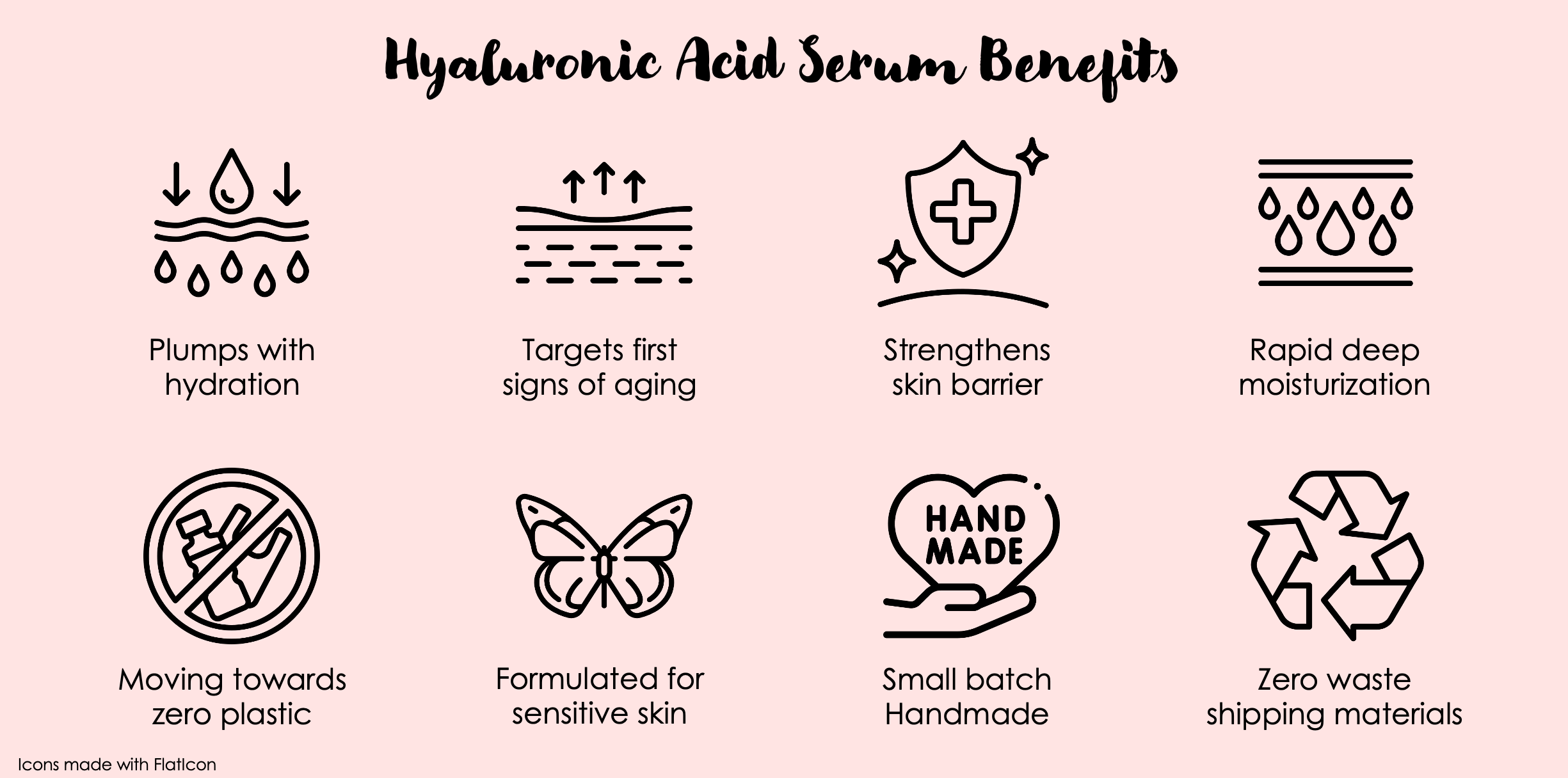 Enjoy our luxurious handmade hydrating serum made with a hyaluronic acid complex that not only instantly hydrates the skin but also prevents early signs of aging.